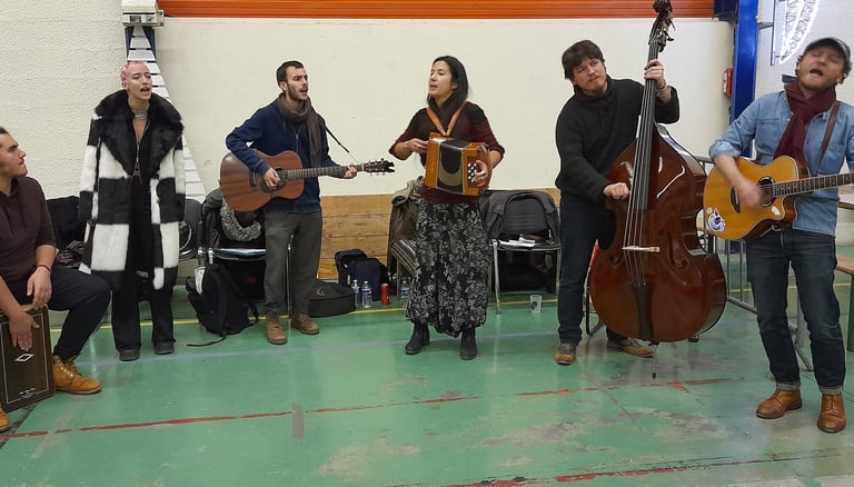 "Nous gardons un très agréable souvenir de cette soirée de notre marché de Noël du 10 décembre 2021, à Mont-Notre-Dame (02), très joyeusement animée par Hélianthème, jeune groupe dynamique et prometteur."